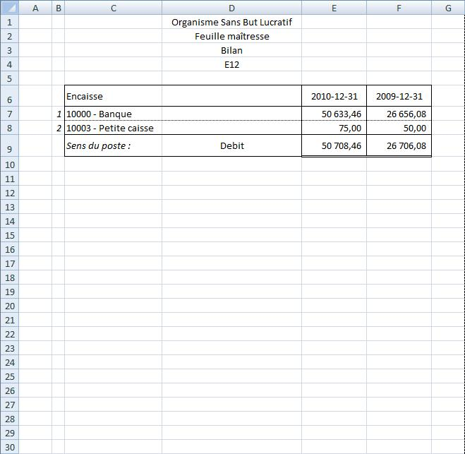Voici l'état financier élaboré dans la feuille excel qui était active lorsque le bouton Feuilles maîtresses a été cliqué: