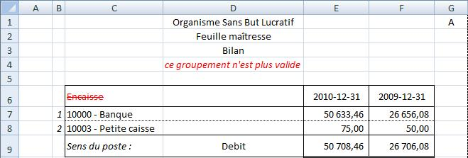 Poste retiré d'un état financier Si un poste a été retiré d'un état financier, cela sera indiqué dans la feuille maîtresse de la façon suivante: