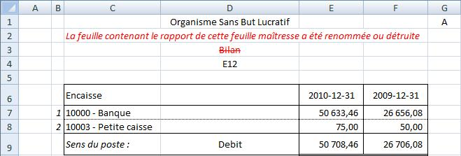 État financier Si la feuille excel contenant l'état financier d'une feuille maîtresse est enlevée du classeur, cela sera indiqué dans le feuille maîtresse de la façon suivante: