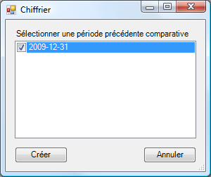 Après avoir cliqué le bouton Chiffrier, la boîte dialogue suivante apparaît, permettant de sélectionner une période précédente comparative pour l'affichage des soldes de la balance de vérification de la période précédente dans la colonne A du chiffrier: