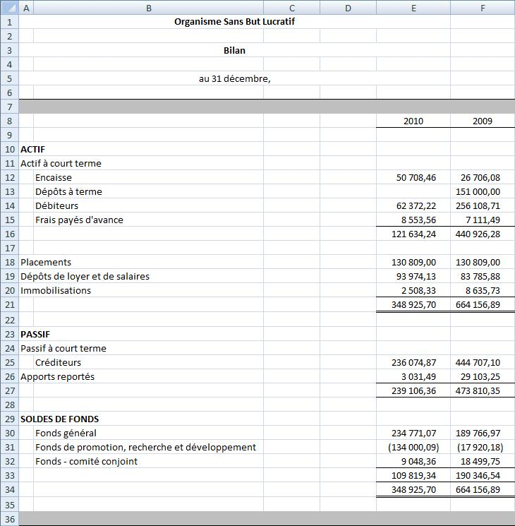 Note: Des colonnes vides peuvent être insérées entre les colonnes affichant des soldes, pour fins de présentation.