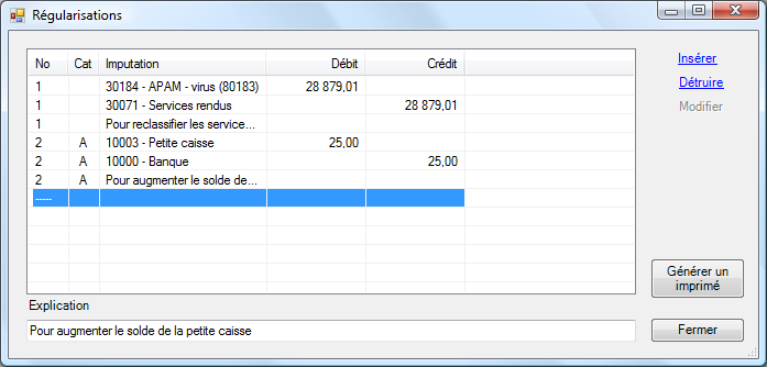 NOTE: Les régularisations influent sur les soldes de la période courante seulement. Elles n'influent aucunement sur les soldes des périodes précédentes.