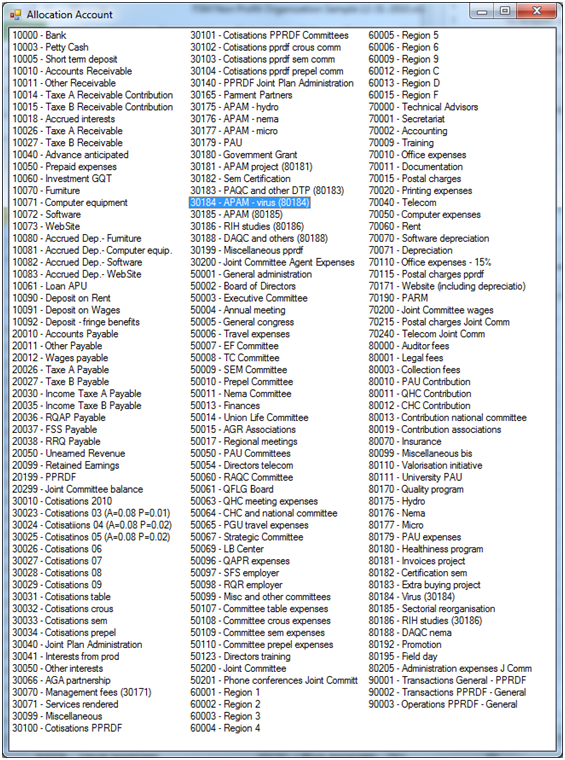 Shortcut: If you know the desired account number, type it, and it will be highlighted in the account list. To complete the selection, type Enter. The list will close, and the selected account will be chosen.