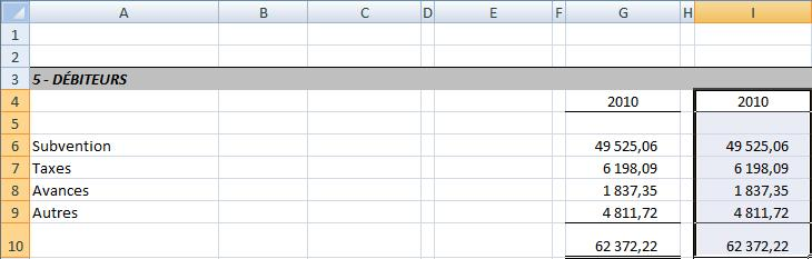 •Sélectionner la colonne des soldes de postes comme bloc de cellules à copier (cliquer directement sur l'entête de la colonne) •Copier ce bloc de cellules (cliquer à droite + Copier) dans la colonne désirée (cliquer directement sur l'entête de la colonne, cliquer à droite + Coller) •Sélectionner les périodes de début et de fin pour cette colonne comparative •Cliquer directement sur l'entête de la colonne •Cliquer sur la flèche à l'intérieur du bouton Variation de soldes •Cliquer Sélection de période(s)