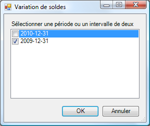 Puis cliquer sur la flèche à l'intérieur du bouton Variation de soldes, cliquer Sélection de période(s), et sélectionner une seule date comme intervalle de périodes: