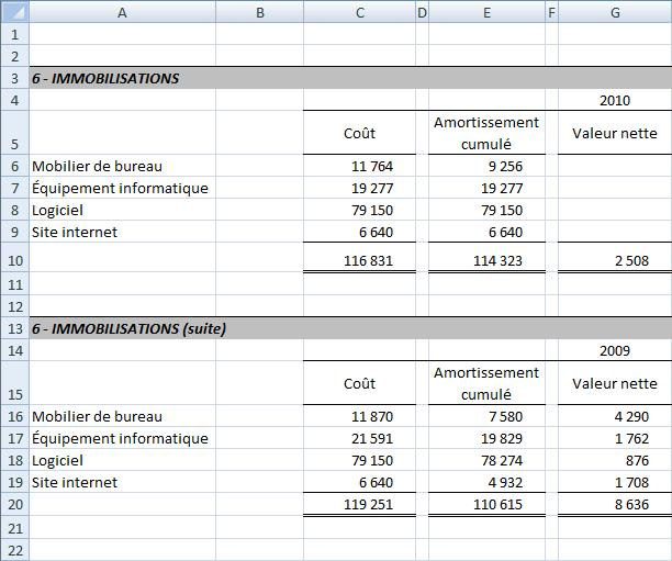 Voici des exemples de notes aux états financiers: