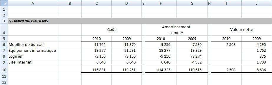Pour les notes aux états financiers, la présentation comparative automatique produite par l'activation du bouton Comparatif peut s'avérer inappropriée. Le recours au bouton Variation de soldes et la création manuelle d'une présentation comparative seront alors utilisés.