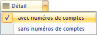 L'affichage des comptes avec ou sans numéros de comptes est déterminé par le bouton Détail. Cliquer sur la flèche à l'intérieur du bouton Détail pour sélectionner avec numéros de comptes ou sans numéros de comptes: