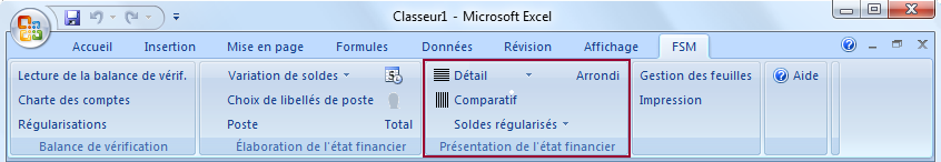 Les boutons du groupe Présentation de l'état financier permettent de: