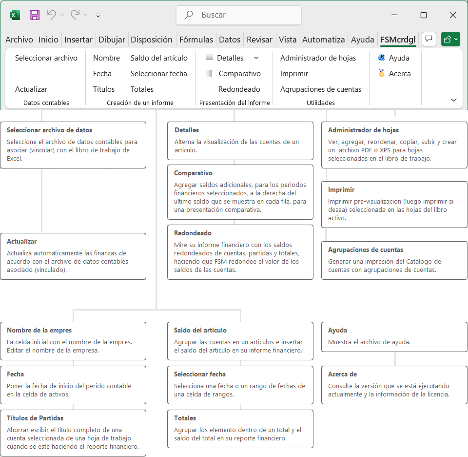 - usted elabora sus informes financieros utilizando los botones FSM,