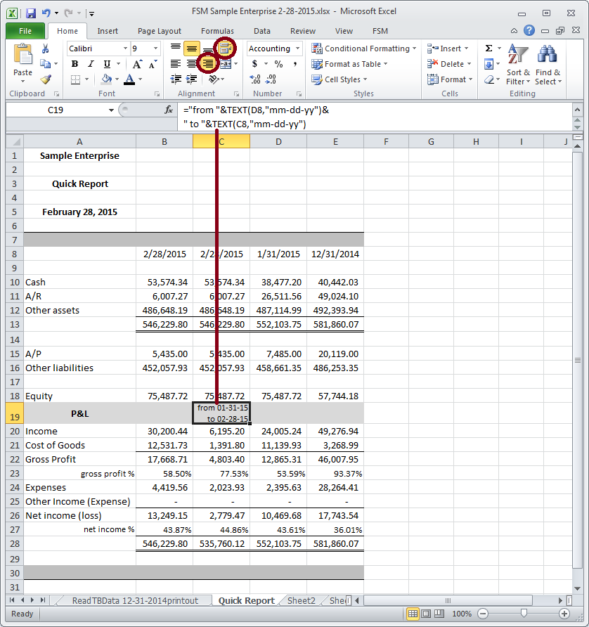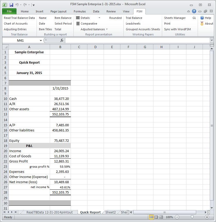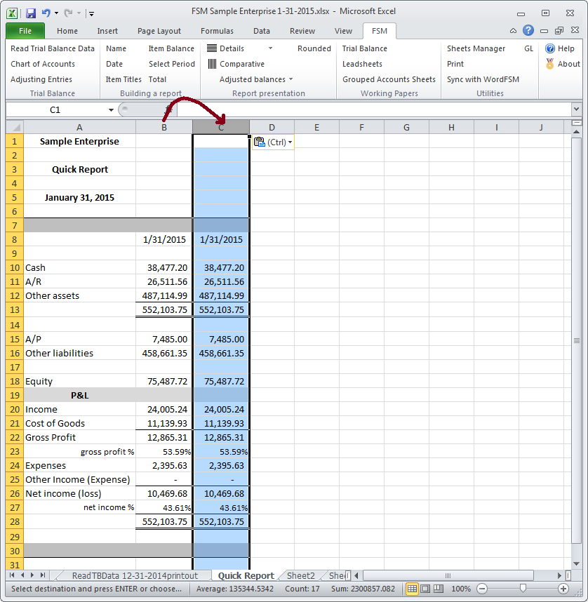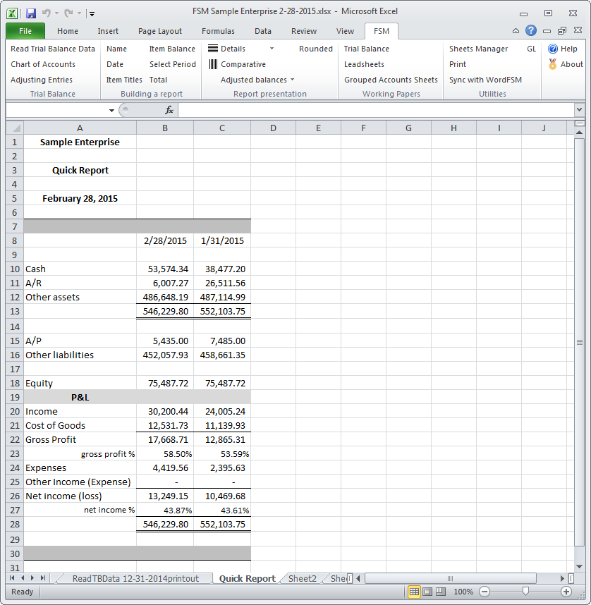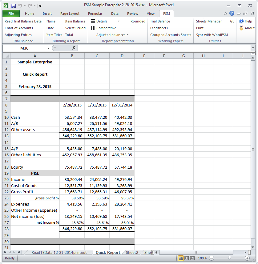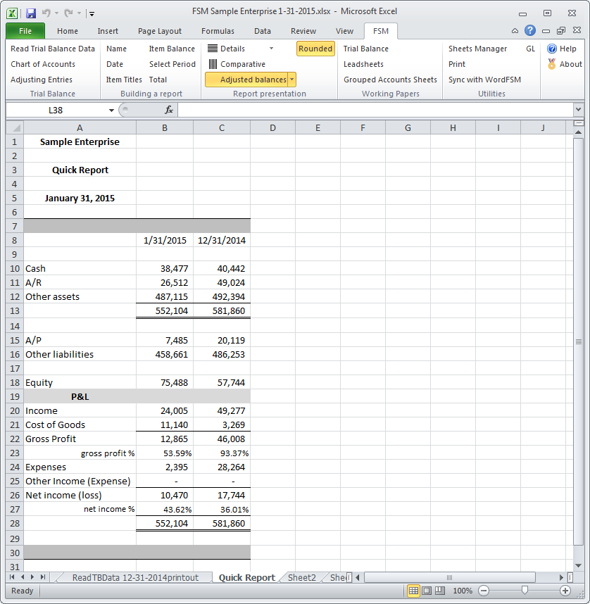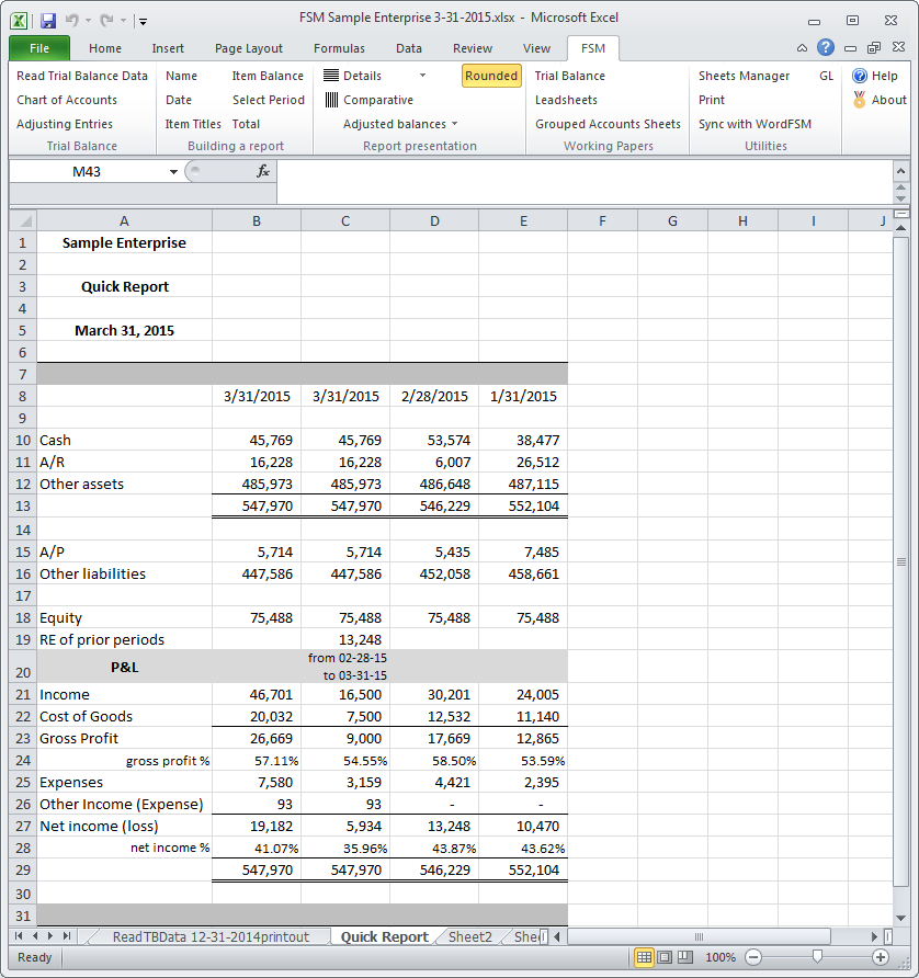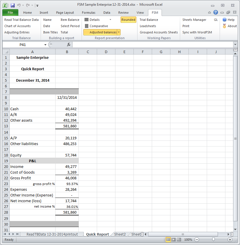 Click the FSM ribbon button ‘Rounded’ to present rounded balances