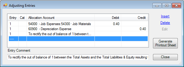 If the rounding process results in an out of balance of 1 between the Total Assets and the Total Liabilities & Equity, simply record an adjusting entry to rectify the situation.